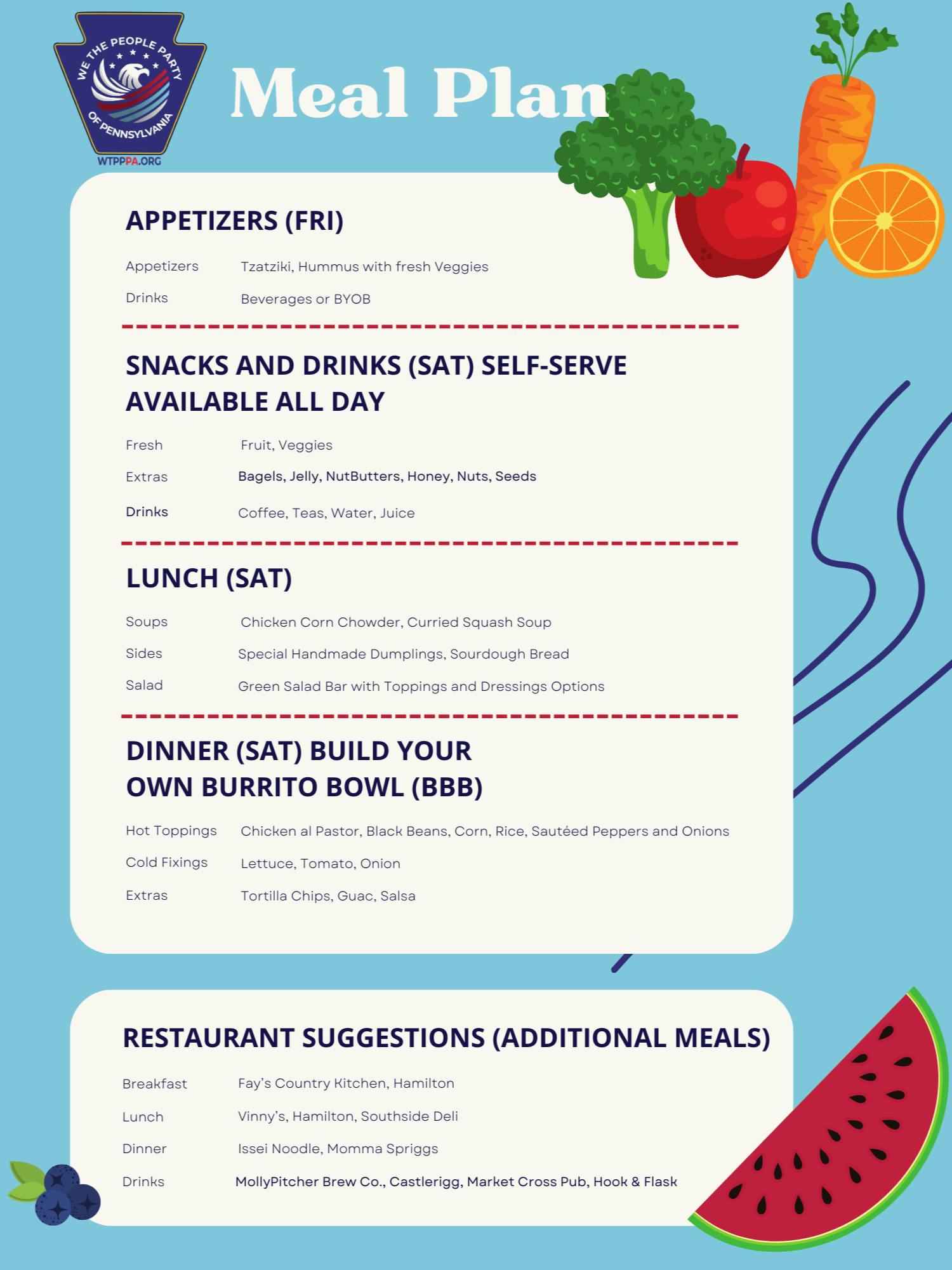 Whether you’re a dedicated member or just interested in learning more about We The People Party, come by for delicious food, engaging discussions, and a great time!